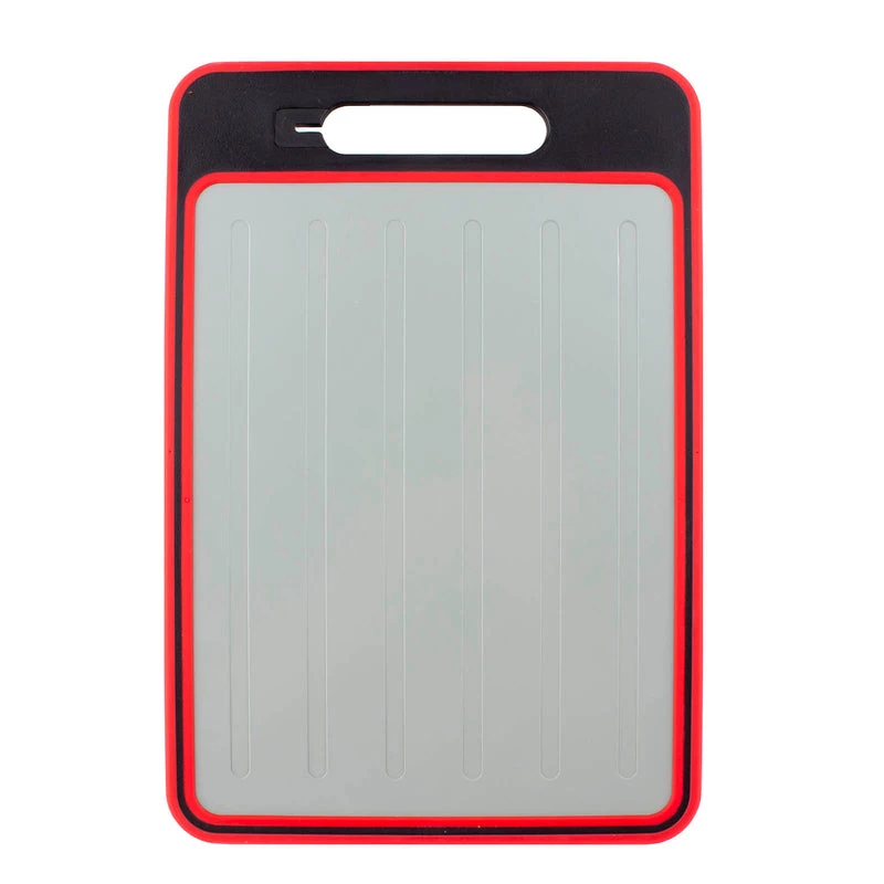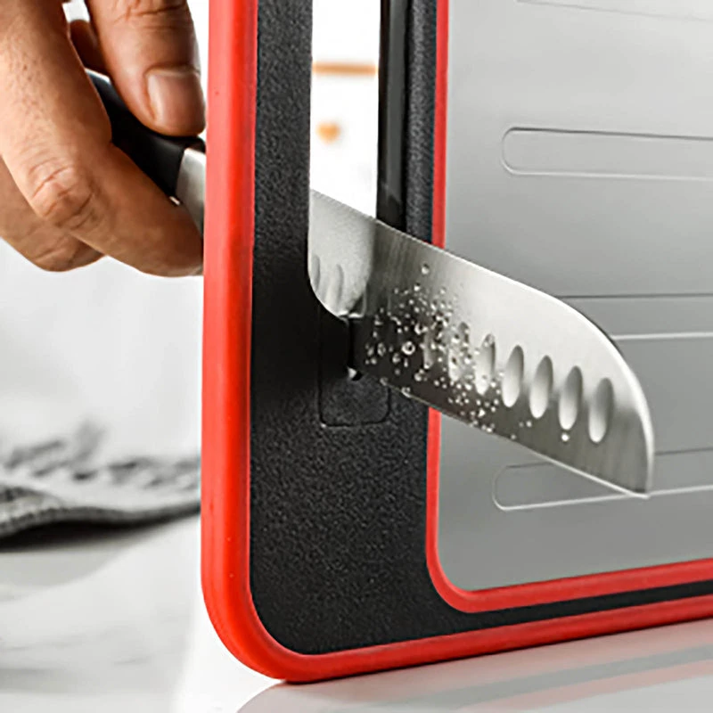 This 4-in-1 cutting board is a must-have when prepping garnishes or food. On one side you have your standard cutting board, and on the other is a defrosting tray. Located on the top left you have a small grinder and It even has a built-in knife honer to keep your knife clean. It also has a silicone lining to make sure it stays in place. Made of durable plastic, This tool is built to last and is very compact. This board measures 14.25″ in length and is 9.75″ wide.