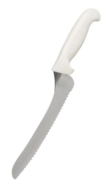 This 9″ offset serrated knife works well on everything from bread to fruit.