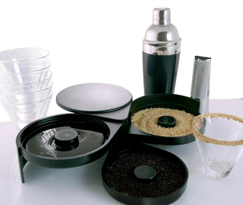 Are you someone who enjoys hosting holiday (or special occasion) parties while bringing new and creative ideas to the mix? If so, check this out! We have created a fun 9 piece “Creative Cocktail” Home Bar Kit. This bar set is ideal for the home party host and features all the tools you need to impress your guests! Highlighting the 3 Tier Salt Rimmer, as well as some assistance from “Tipsy Bartender” we took this idea to the next level. Traditionally, you would use a Salt Rimmer, for well… salt! Which is great when you are making margaritas… but stop and think about all of those deliciously trendy martini concoctions you can create utilizing this great kit. Creative presentation and amazing taste is every hosts desire… so dress to impress!