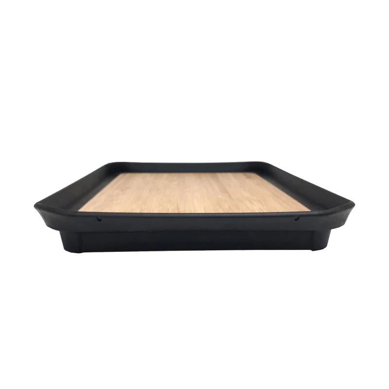 Bamboo cutting board that has juice grooves around the edges, that help catch any excess liquid. You just tip and pour without any mess. Intended to be your everyday board, which is kind to your knives and has non-slip rubber feet on both sides for better control. When you flip the polypropylene edge up, you also get a fully-fledged serving tray. Nothing can roll away! Earth friendly with a long useful life, being made from bamboo, a renewable resource. Perfect in size for storage in a drawer, and for small counter space. Constructed from a unique 3 layer cross-ply lamination, the over-moulded flip up edge also seals the ends of the bamboo fibers. This prevents the fibers from swelling in water which leads other wooden boards to crack. Measures 10” x 7” and dishwasher safe.