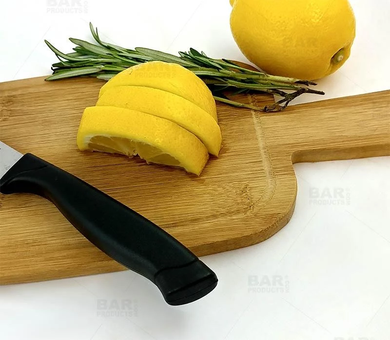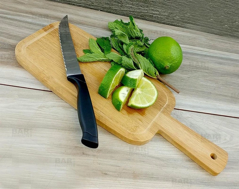 Eco-friendly Bamboo Cutting Board, ideal for cutting fruits and vegetables. It is anti-microbial, and moisture resistant. Bamboo wood is intended to withstand years of knife use. Perfect in size for storage in a drawer, and for small counter space. Cutting surface measures 9 1/2″ x 5″, the handle measures 4″ and it has a hole for easy hanging.