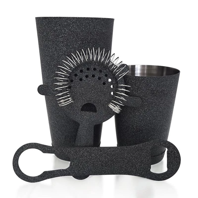 This BarConic® 4 Piece Bartending Kit is an invaluable tool needed in every bartender’s repertoire. It includes all the utensils necessary to create a perfect cocktail. These stylish bar tools are simple to use and easy to clean, they make a great gift for any beginning bartender. The 28 ounce and 16 ounce shakers give the contents of the cocktail enough room to move around and aerate. The stainless steel frame of the shakers helps to keep the drinks chilled until you’re ready to serve it. The shakers have a textured weathered iron finish that gives you a more secure grip while you’re making drinks. The Hawthorne styled strainer is constructed from stainless steel which guarantees durability and prevents any rust or erosion. The tight ring of coils and four pronged design of the strainer ensure stability and precision when dispensing a beverage. Inferior strainers that struggle to properly strain a drink are a recipe for disaster resulting in sloppy presentation and substandard cocktails. Our new and improved V-Rod® bottle openers help you remove pour spouts from liquor bottles quickly instead of wasting time struggling to wrench it out with your hands. With everything you need, this is a great kit for professional bartenders and home bar enthusiasts. Keep them coming back for great service with this perfect BarConic® 4 Piece Bartender’s Kit.