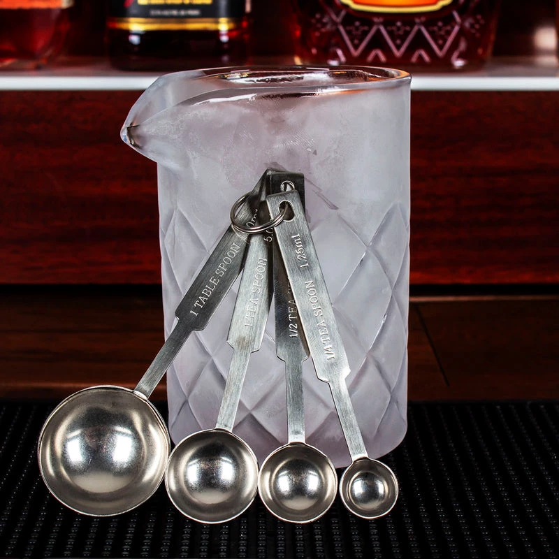 This 4 piece measuring spoon set is a great tool for getting just the right amount of ingredients for any cocktail. This set features 5 spoon that comes with the measurements of 1/4, 1/2, 1 Teaspoon & 1 Tablespoon. They are made of durable stainless steel so they are durable and will last for a long time. This set also includes a keyring so you can keep it on you at your convenience.