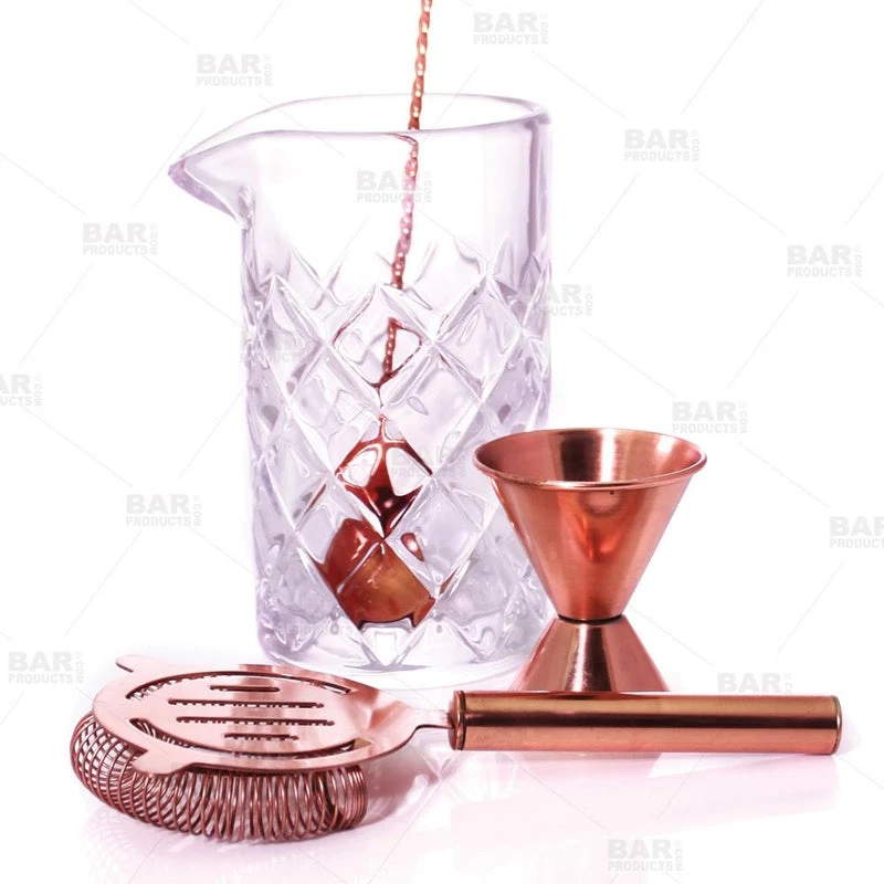 The BarConic® Copper & Diamond Pattern 22 oz Mixing Set is a top-notch set at a price that can’t be beat! It is the perfect way to mix all of your favorite cocktails in style. This bartender set features our diamond pattern mixing glass and high quality copper bar tools. It is even stylish enough to display on the bar all the time. This set will quickly become a favorite of any bartender or cocktail lover. Great gift for holidays, birthdays, house warming parties, and more!