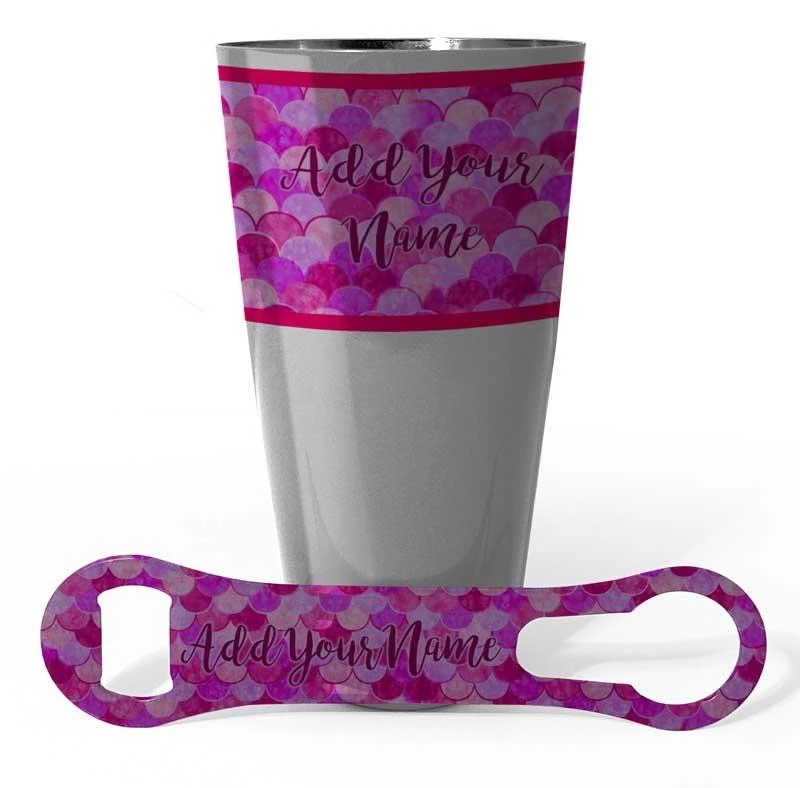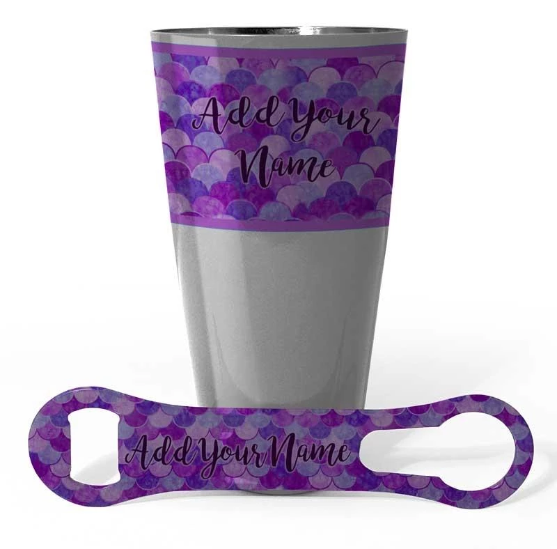 Every bartender knows that having the right bar tools behind the bar is essential, which is why we take great pride in offering the best and most unique styles. This fun 2 piece matching bartending set showcases the popular 28 ounce weighted cocktail shaker along with a matching V-Rod® Bottle Opener, both with our Mermaid Scales design to add a little personality to your bar shift. Because Mermaids are supposed to drink like fish! This shaker and bottle opener also can be customized with your name or any text of your choice! Just type your text and we do the rest.
