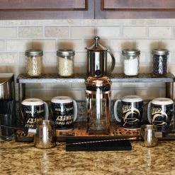 These 2 tier shelves are designed to fit perfectly underneath your cabinets, while still being able to easily pull standard sized liquor or wine bottles from the top tier. They are handcrafted in the USA, right here in our very own BPC woodshop. Counter Caddy Straight Shelves are constructed from a durable wood material with 4 secure 3.5″H dowel rods. This particular shelf features a trendy smooth stained finish that easily wipes clean. They are also sold with rubber feet on the bottom, giving the shelf a bit of a raise from your counter while protecting it from scratches and bacteria build up.