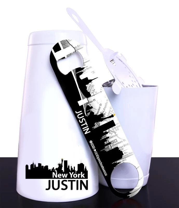 New York, one of the best states in America. Show your love for the city with a custom cocktail shaker set. Great gift for that New Yorker in your life or a bartender who can’t get enough of this city.