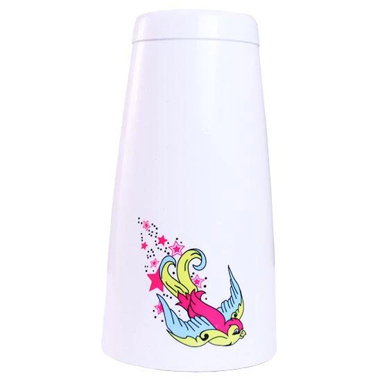 - Tattoo style sparrow printed on white cocktail shaker