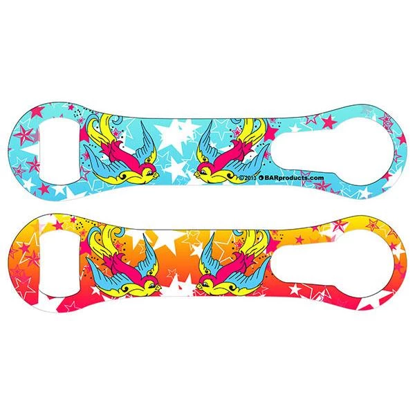 This cute sparrow is sure to fly right into your heart. You will certainly soar above other bartenders when you use this fabulous cocktail shaker tin and bottle opener. The sparrow print is on the 28oz shaker and bottle openers(Speed/ V-Rod®) only.