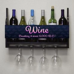 Flash Sale 😀 Bars Wall Mounted Wine Bottle & Glass Hanging Shelf W/ Grapes Crushing It Plaque ⌛