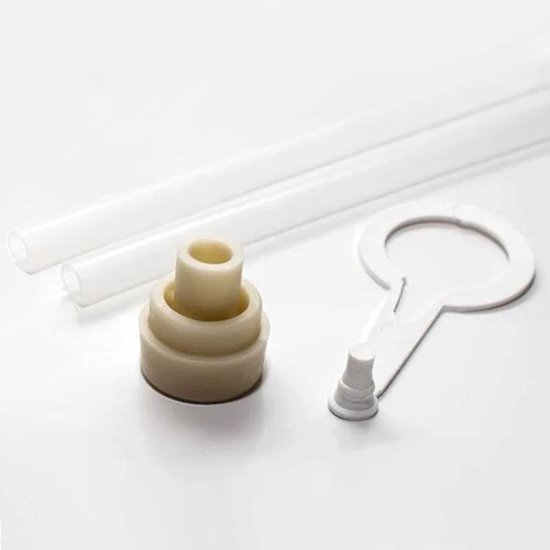 Package includes: – 1 Dispenser head – 2 plastic tubes – they can be cut into desirable size – 1 drip stopper – 1 rubber seal