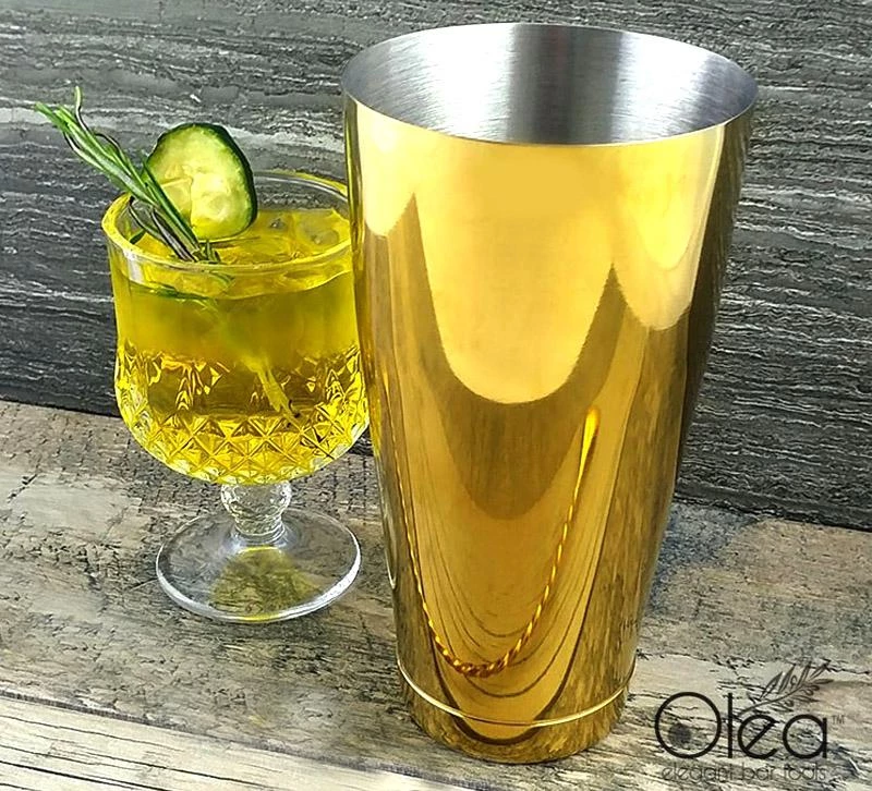 Beautiful Bright Gold Plated 8 piece Bar Set. A collection of our Olea™ Elegant Bar Tools, this bar kit is every master mixologists and professional bartenders dream bartending kit. The high quality pieces are constructed from a durable stainless steel material and then beautifully plated with a reflective Gold finish. Show you’re a touch above the rest with this Elegant Olea™ Set.