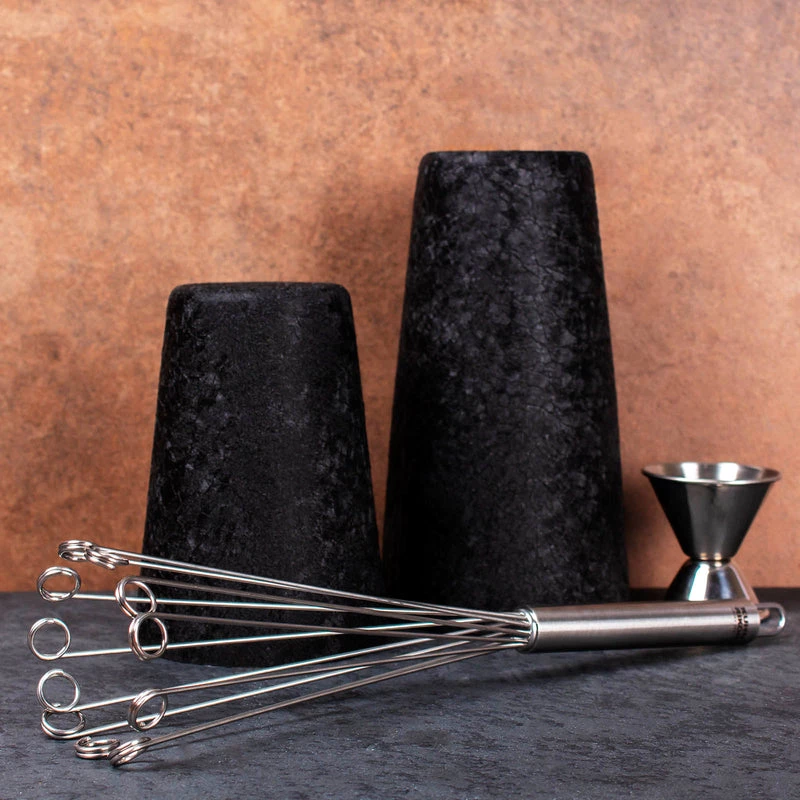 This whisk mixes liquids easier and faster than ever. It has long wires with small loops at the ends that add friction to quickly mix and whip liquids. They are also great for creating nice foamy egg whites for various cocktails. This whisk is lightweight and made of durable stainless steel. This whisk is measured at 10″ in length.Β
