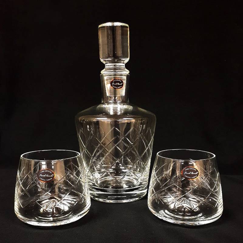 - Includes: Decanter, Crystal stopper, 2 Whiskey Glasses